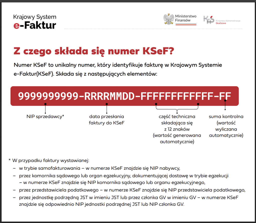 Dotychczas w materiałach MF (tutaj stara grafika) informowało, że numer KSeF będzie zawierał w przypadku wystawiania faktur: