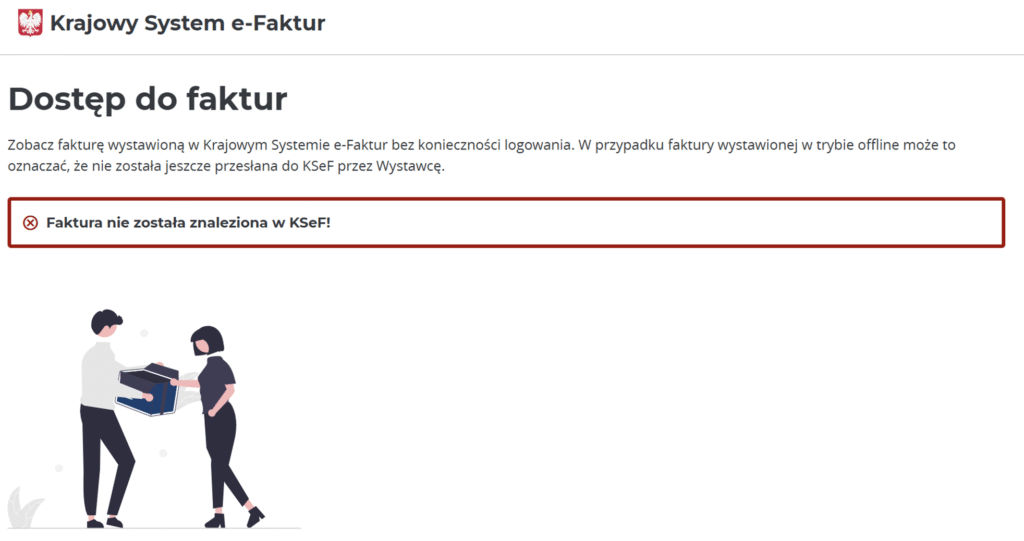 Jeżeli jednak faktura nie znajduje się w KSeF, to zobaczy poniższy komunikat: